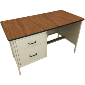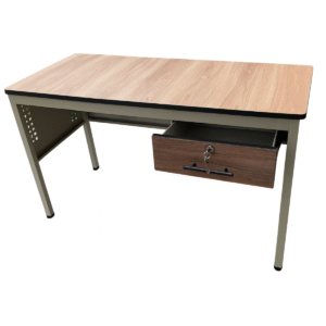 Escritorio de 120×60×75 cm con cubierta en laminado plástico resistente y cajón integrado con cerradura para resguardo seguro de documentos y accesorios. Su diseño compacto y funcional es ideal para oficinas, áreas administrativas y espacios de trabajo que requieren durabilidad y organización.